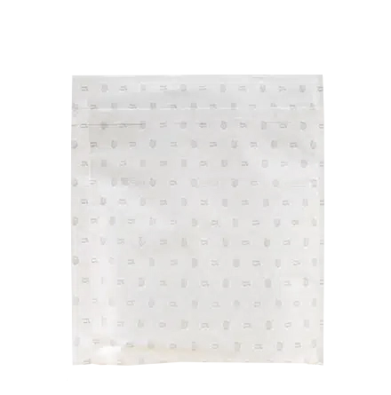 Sachet monomatériau, particulièrement résistant car il est entièrement thermosoudé, non collé et équipé d’une bande adhésive d’ouverture et de fermeture.