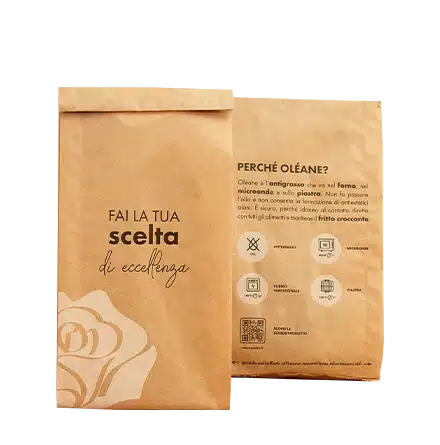 Grâce à ses caractéristiques techniques, il offre des performances supérieures à celles des emballages traditionnels : en plus d’être ingraissables, les sachets Olà préservent la texture croustillante des aliments et permettent de les réchauffer facilement dans un four traditionnel, au micro-ondes ou sur le grill électrique. En outre, grâce aux impressions génériques raffinées et exclusives, les sachets de la ligne Olà ajoutent une touche de classe à n’importe quel contexte. Vous pouvez également personnaliser les sachets avec votre propre logo, ce qui en fait un outil de communication efficace pour véhiculer l’identité et les valeurs de votre marque.