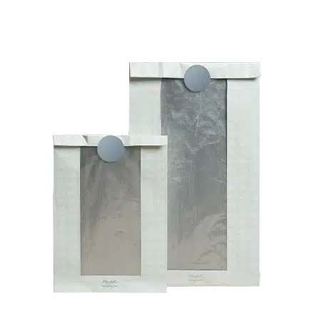 En plus du papier, la ligne Blanca comprend également des sachets de tailles et de formats différents, thermosoudables et également disponibles avec une fenêtre en parchemin ou une fermeture avec bande adhésive.