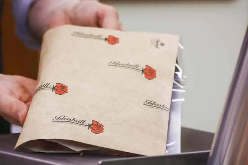 Ideabrill consiste en papier kraft en pure cellulose à fibres longues, laminé avec une pellicule traitée, qui préserve les caractéristiques organoleptiques des aliments plus longtemps que les emballages traditionnels.