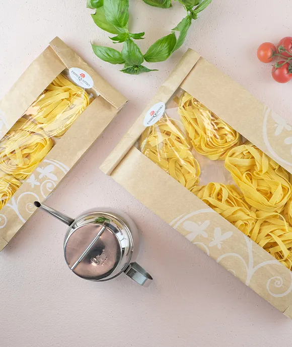 Le Sachet Fraîcheur avec fenêtre Ideabrill est parfait pour présenter vos pâtes fraîches de manière élégante et artisanale